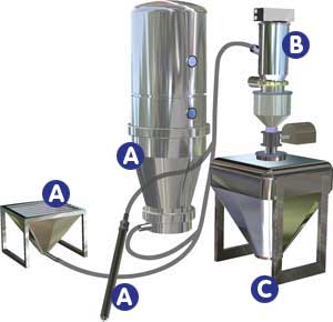 • SWP系列粉料輸送——電動泵式超細粉末真空上料機原理與應用 產品介紹電動泵式(超細)粉末真空上料機是依靠內部壓力低于外界大氣壓力(標準大氣壓力等于101.325KPa)的空氣流,攜帶物料沿著輸送管內流動線路進行輸送,有著如下優點: 1) 電動泵式超細粉末真空上料機可將分散的... 查看詳情